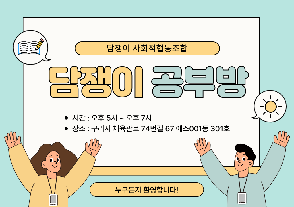 담쟁이사회적협동조합 공부방을 개방하여 운영하고 있습니다!